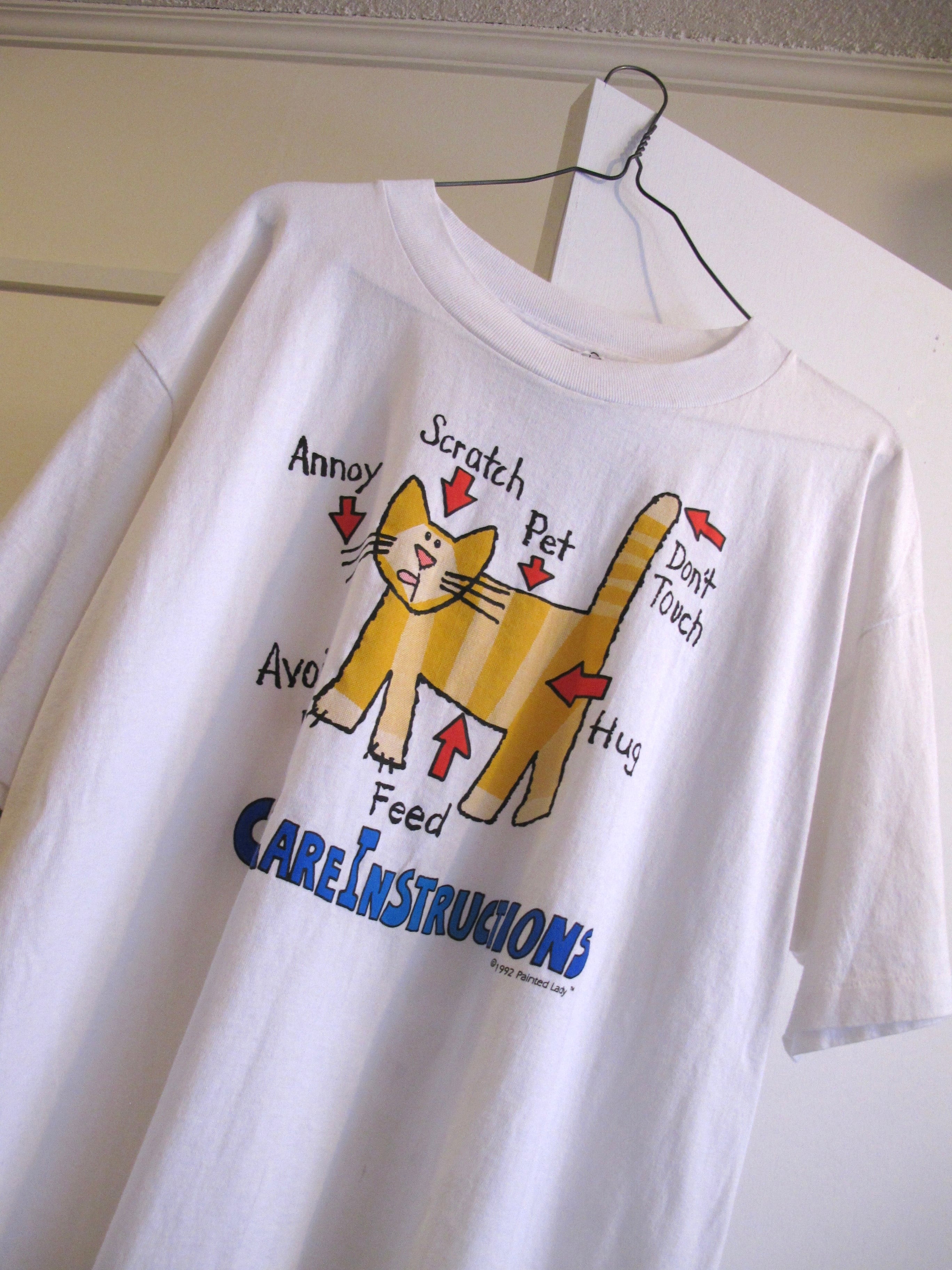 90's cat care instructions t-shirt